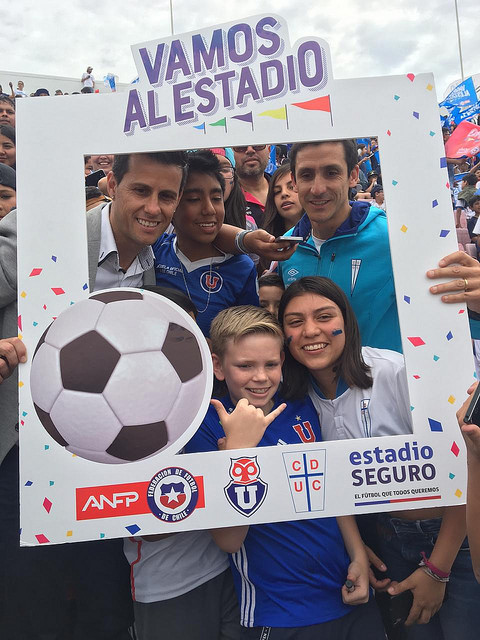En la actividad realizada bajo el lema “Distintos colores, una misma pasión”, también participaron la Intendencia Metropolitana, Carabineros de Chile, el Ministerio del Deporte e importantes embajadores de cada club: Diego Rivarola por los azules y Milovan Mirosevic, en representación de los cruzados.