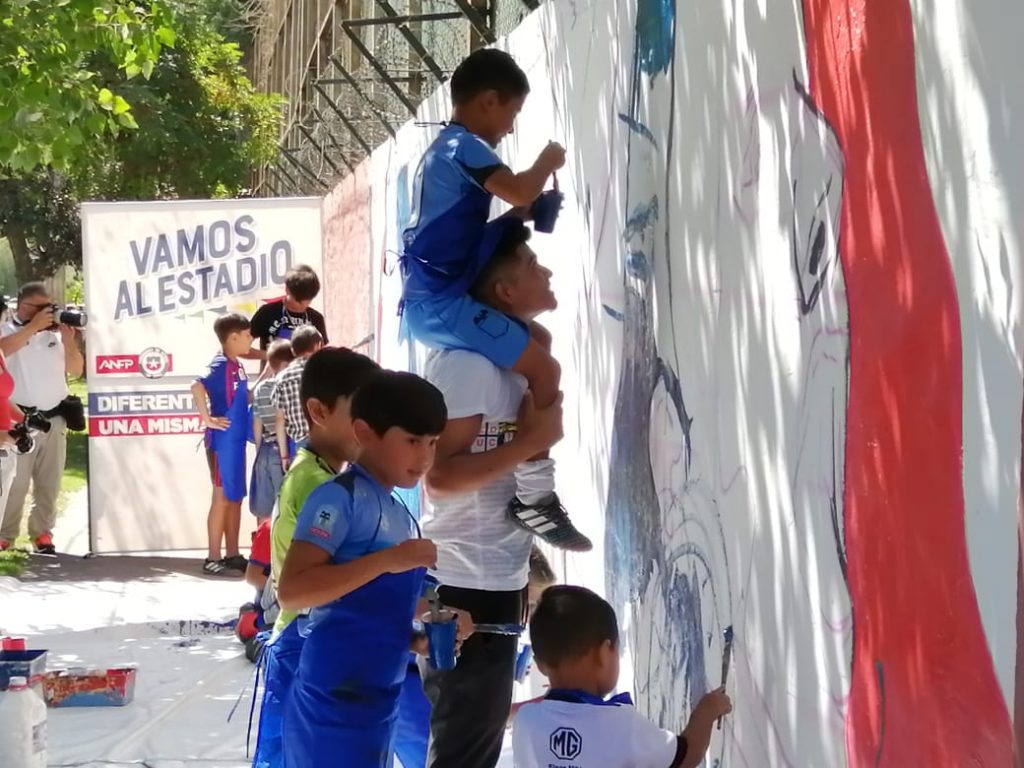 Campaña “Vamos al estadio”: Niñas y niños pintaron un simbólico mural en el frontis de Juan Pinto Durán
