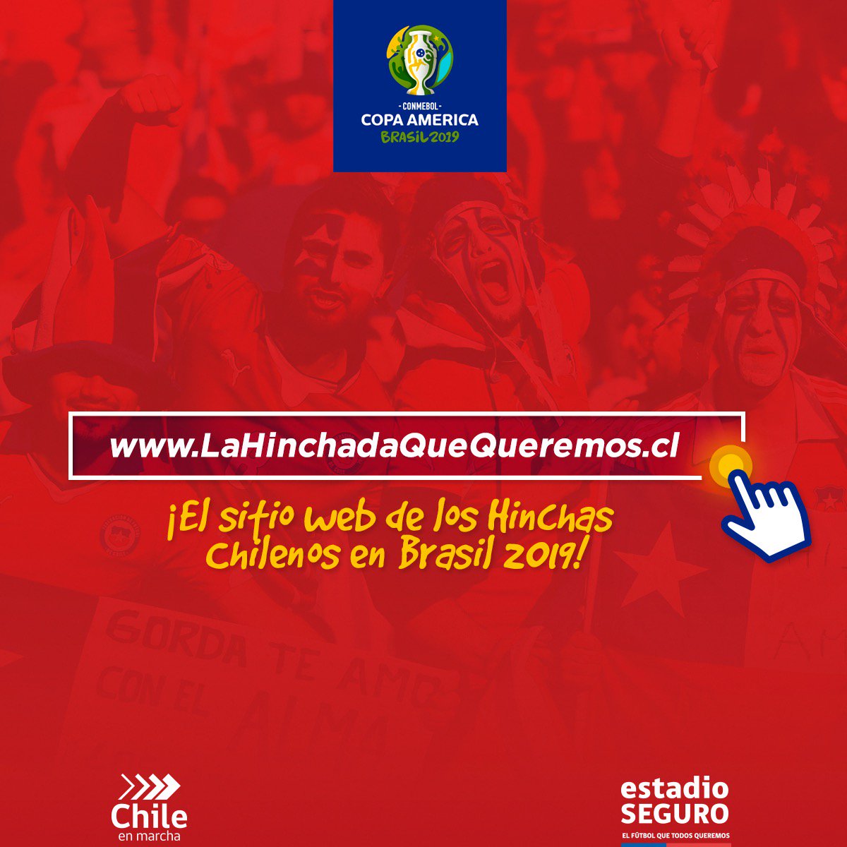 Serán más de 20 mil los chilenos que arribarán a Brasil con ocasión de la Copa América y en este contexto, el Plan Estadio Seguro creó el sitio web www.lahinchadaquequeremos.cl, el cual alberga información respecto a las sedes, normativa de Conmebol para ingreso y permanencia, además de consejos generales para que el hincha pueda anticipar en caso de cualquier eventualidad.