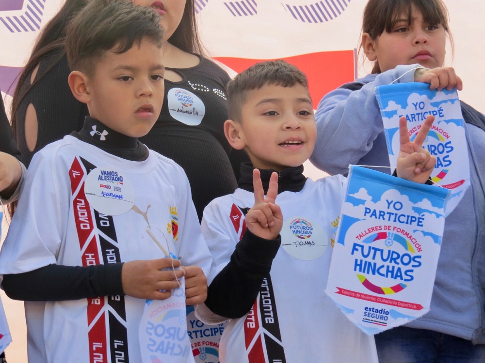 Viernes 26 de Junio. – 500 niños y niñas fueron premiados en la ceremonia de finalización de los talleres de formación de futuros hinchas responsables del fútbol, actividad en la cual se entregaron conocimientos sobre ciudadanía deportiva en ambientes recreativos.