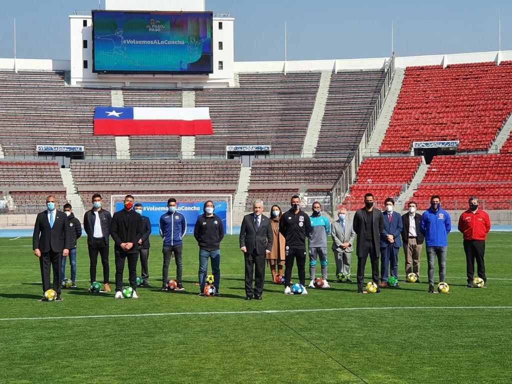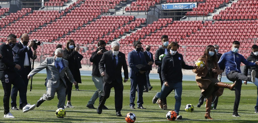 El Presidente de la República, Sebastián Piñera, acompañado de los Ministros del Deporte, Cecilia Pérez, y de Salud, Enrique Paris; el presidente de la Asociación Nacional de Fútbol Profesional (ANFP), Pablo Milad; el Jefe de Estadio Seguro; Cristóbal Lladser; el presidente del Sindicato de Futbolistas Profesionales de Chile (SIFUP), Gamadiel García; y capitanes de los clubes de primera división anunciaron el retorno a los estadios del fútbol profesional en Chile.