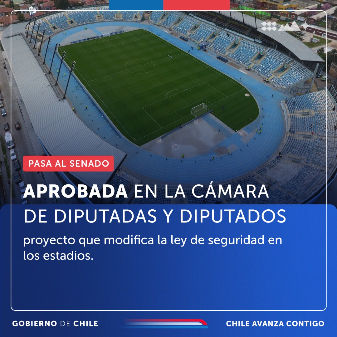 Valparaíso- La Cámara de Diputadas y Diputados aprobó y despachó a segundo trámite legislativo el proyecto de reformas de la Ley N° 19.327 que establece nuevas normas y fortalece el desarrollo de espectáculos de fútbol profesional. El texto, que surgió de un trabajo mancomunado entre la Subsecretaría del Interior, el Ministerio del Deporte y el Departamento Estadio Seguro, busca establecer un marco jurídico que promueva los principios deportivos de seguridad, prevención, organización, convivencia, responsabilidad y eficiencia del sistema antiviolencia en el deporte profesional.